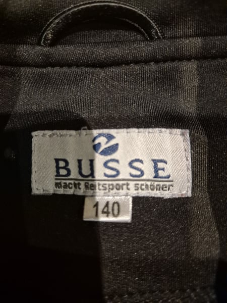 Hiermit biete ich eine Tunierjacke der Firma Busse an. Grösse: 140 Farbe: schwarz sehr guter Zustand, zum Verkauf an.