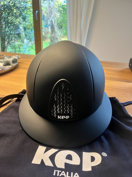 Schöner Reithelm von Kep, nur 3-4 Mal auf dem Turnier getragen, daher wie neu und nur minimale Gebrauchsspuren. Größe 57 Bei Interesse gerne melden:)