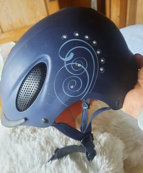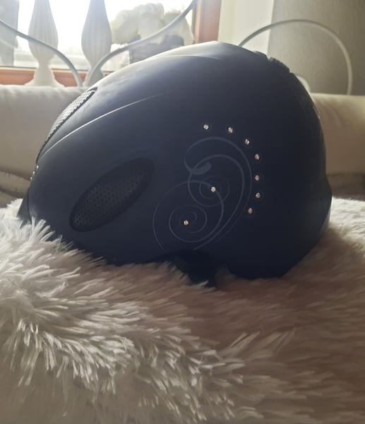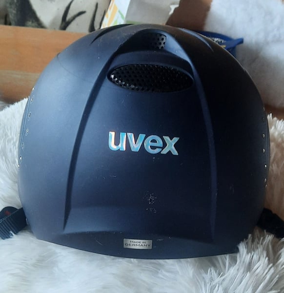 Mitternachtsblauer Reithelm von Uvex mit Swarowskisteinen, sehr gut erhalten, kein Sturz, nicht beschädigt, GR 57-59 kann von Damen und/ oder Mädchen getragen werden