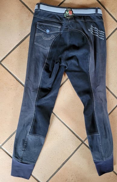 Sie bieten hier auf eine blaue Damen Jeans Reithose (siehe Foto) von der Firma USG in der Größe 80 mit blauem Vollbesatz maschinenwaschbar bei 40 Grad