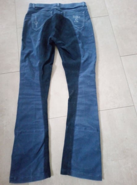 Verkaufe 1 neue Jodhpurreithose für Damen von Covalliero im 5 Pocket-Style in nachtblau Gr. 40 (fällt kleiner aus) mit Vollbesatz aus dehnbarem Kunstleder elastischer Bund mit Gürtelschlaufen strapazierfähiges Material aus 73% Baumwolle, 25% Polyester, 2% Elasthan Besatz: 60% Polyamid, 40% Polyurethan pflegeleicht, Maschinenwäsche bei 30°C Gesamtlänge: 107 cm Schrittlänge: 82 cm Bundweite: 40 cm Oberschenkelweite: 24 cm Der Hose ist neu und ungetragen. Die Etiketten wurden entfernt, ebenso fehlen die Elastikbänder an den Beinabschlüssen.
