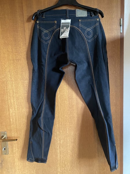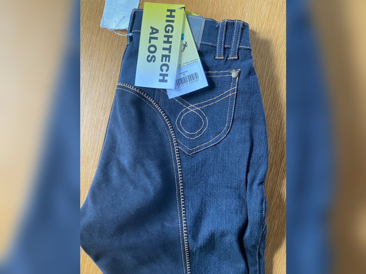 Reithose Jeans schwarz, Gr. 42, bi-elastisch, ALOS Vollbesatz, Beinabschluss mit Klett verstellbar