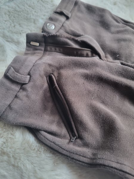 Reithose Braun Mit Gürtel tragbar Klettverschluss zum verstellen an den Knöcheln Kleine Tasche rechts Größe 152 Beinlänge 75cm (Hüfte bis Knöchel) Eher für Stall oder Bodenarbeit, zum Reiten fehlt halt der Anti-Rutsch Stoff