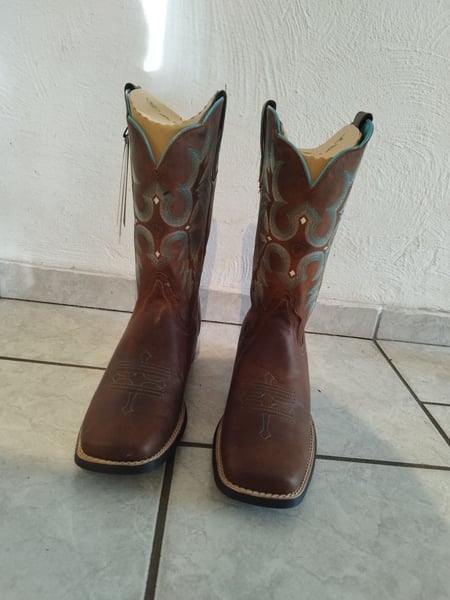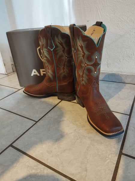 Wie auf dem Bildern zu sehen komplett neue und ungetragene Ariat Damen Westernstiefel in der Größe 41,5. Originalkarton ist ebenfalls vorhanden. Gerne Abholung. Beim Versand müsste ich noch erst über die Versandkosten informieren. Da es sich um einen Privatverkauf handelt keine Rücknahme oder Gewährleistung.