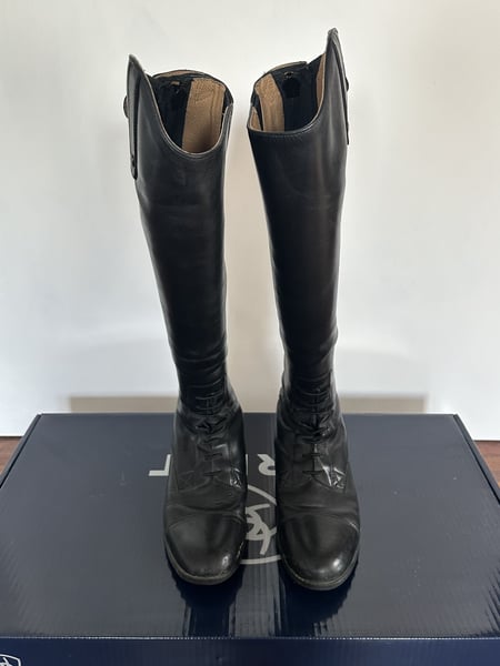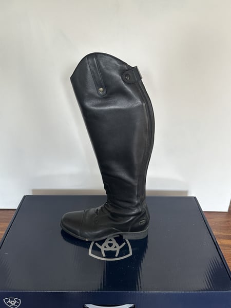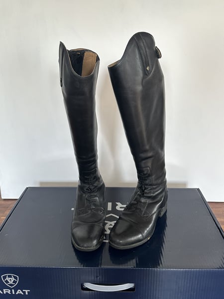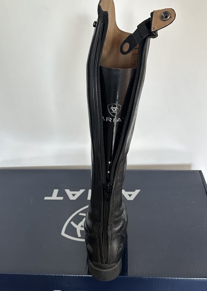 Verkaufe elegante Ariat Heritage Contour II Field Zip Reitstiefel in Schwarz. Sehr hochwertiger Lederreitstiefel, perfekt für Dressur, Springen oder Freizeit. 📌 Details: • Marke: Ariat • Modell: Heritage Contour II Field Zip • Größe: EU 41 / UK 7 / US 9.5B • Höhe: Medium • Wadenweite: Wide (Calf Wide, ca. 41 cm) • Schafthöhe: ca. 48 cm • Farbe: Schwarz • Material: Leder, Balance Manmade • Neupreis: 330 € ✔️ Bequem durch 4LR-Technologie ✔️ Reißverschluss hinten mit Druckknopfverschluss ✔️ Schöne Kontur, elegantes Design Zustand: Sehr gut / kaum getragen (siehe Fotos).