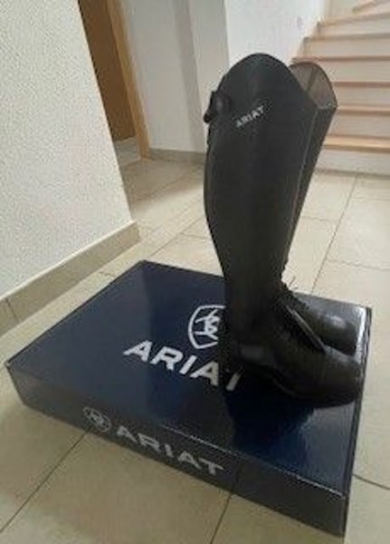 Ariat Palisade in Braun, 37.5 45/34 NAGELNEU mit Originalkarton sind mir von der Wade zu eng.. das Musterpaar im Reitgeschäft war halt schon schön eingelaufen… NP 340.- 180.- Euro VB Privatkverkauf, keine Rücknahme, Garantie über Ariat 4LR™-Technologie für leichtgewichtigen Halt und Stabilität Herausnehmbare Einlegesohle für ganztägige Polsterung Die Duratread™-Sohle wurde für Reiter entwickelt und von ihnen getestet, um die Bodenhaftung genau richtig zu gestalten Integrierte Trittdämpfung an der Ferse Durchgehender seitlicher Elastikeinsatz mit Elastikzwickel an der Knieinnenseite Dressurbogen durchgehender, hochwertiger YKK®-Wadenreißverschluss mit Sicherung Elastische Schnürsenkel Moderne Metallelemente mit Logo 100 % Leder