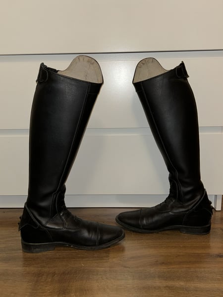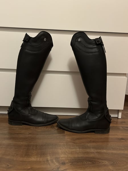 Verkaufe meine kaum getragenen Cavallo Linus slim Reitstiefel in schwarz. Die Stiefel sind in einem sehr guten Zustand und wurden nur wenige Male getragen: • Größe 6 6-5 mit 48cm Schaftlänge und 35cm Schaftweite • Hochwertiges Leder in schwarz • Reißverschluss funktioniert einwandfrei • Keine Kratzer oder größere Gebrauchsspuren • Nur minimale Spuren am oberen Innenrand Die Stiefel passen mir leider nach einer längeren Reitpause nicht mehr richtig. Der Neupreis lag bei etwa 350€. Kann auch versendet werden bei Kostenübernahme Bei Fragen melde dich gerne.