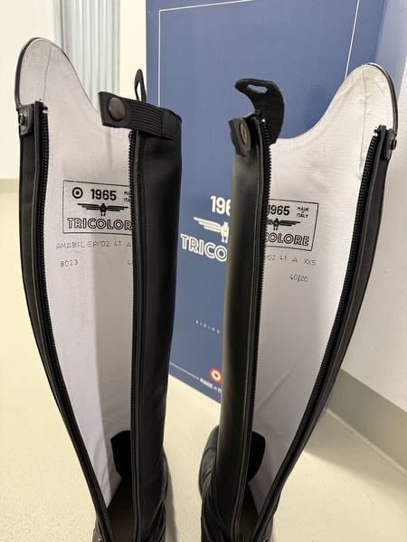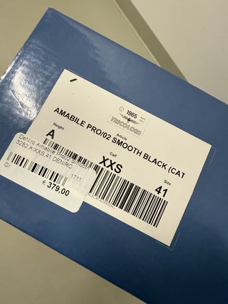 Zu verkaufen sind ein Paar neuwertige Deniro Tricolore (Amabile Pro/02) in smooth black | XXS, Gr. 41 (inkl. Originalverpackung) Die Stiefel wurden lediglich ein Mal (für 30 Minuten) getragen und sind daher in einem neuwertigen Zustand :-) Neupreis: 379€