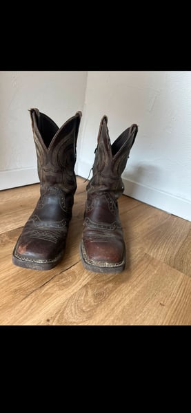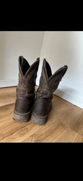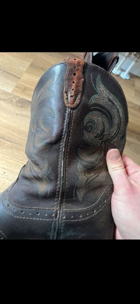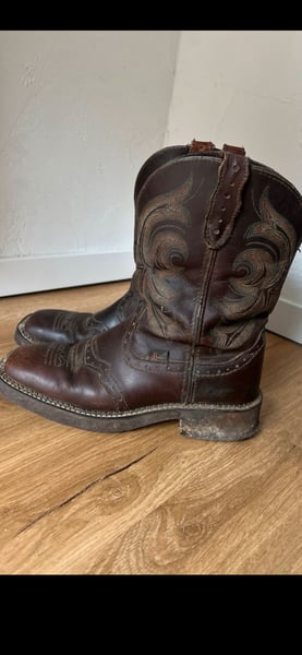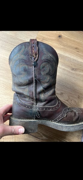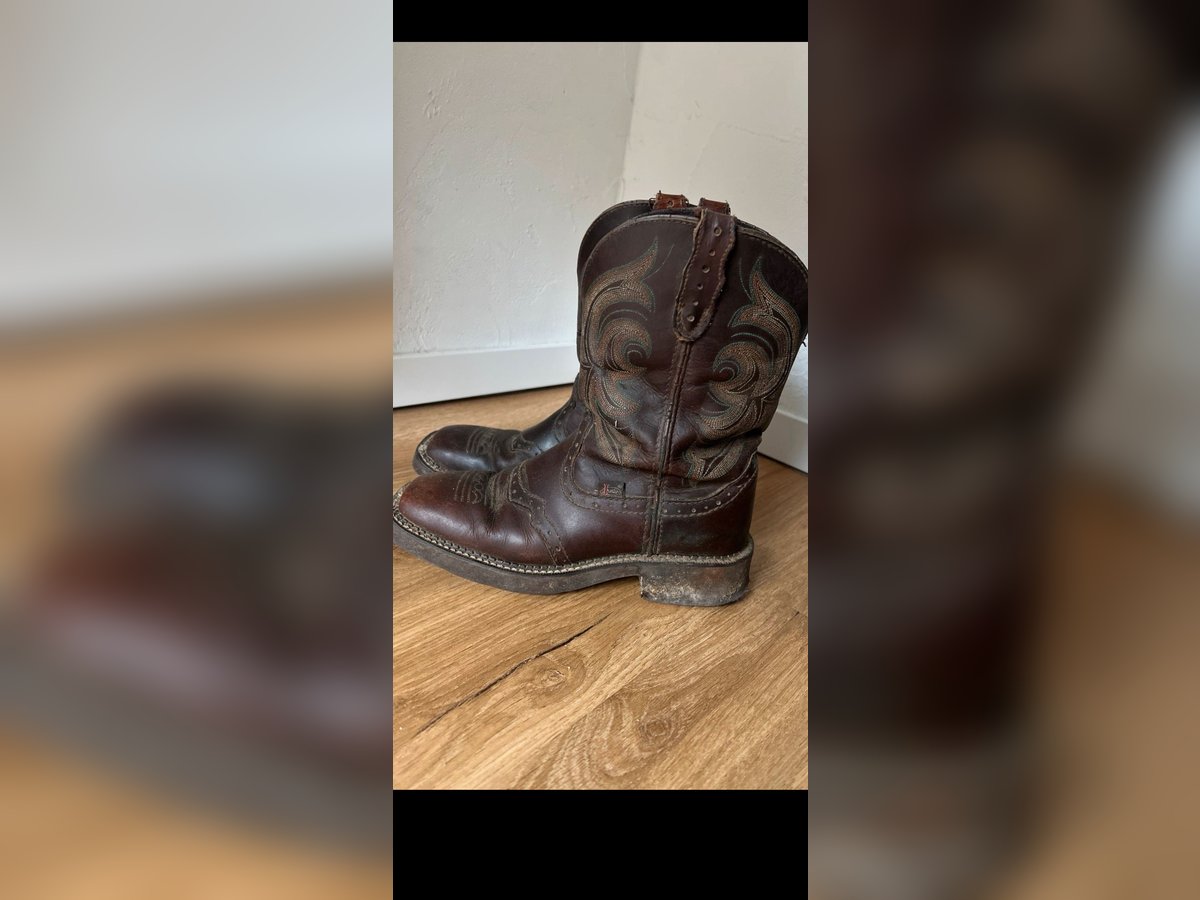 Verkaufe meine Justin Boots Westernstiefel in Größe 38 (US 7,5 B). Die braunen Lederstiefel haben das klassische Western-Design mit Ziernähten am Schaft Die Stiefel zeigen Gebrauchsspuren und kleine Beschädigungen. Sie sind noch sehr gut tragbar, aber definitiv gebraucht. Sehr bequem, mittelhoher Schaft. Bei Fragen melde dich gerne.