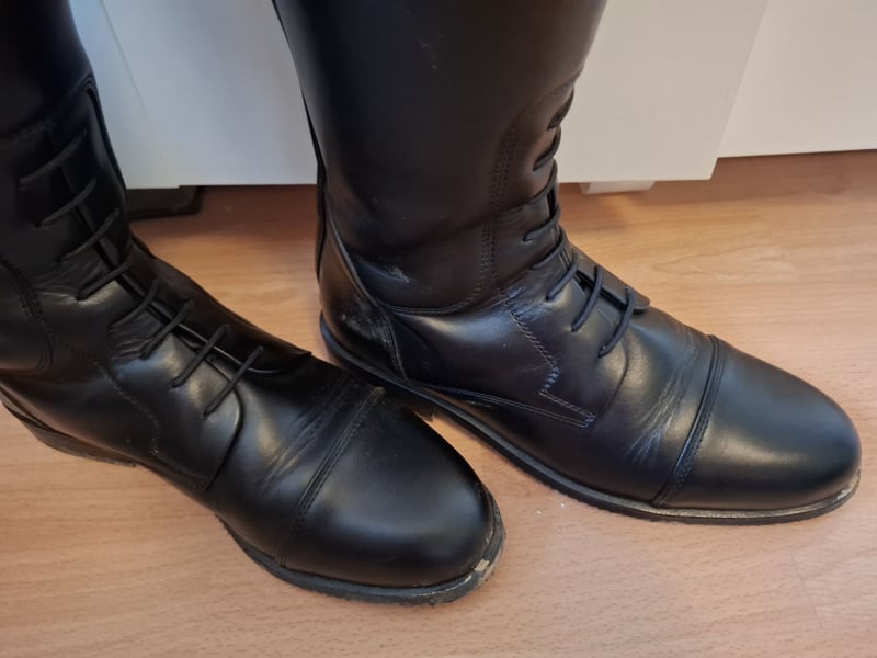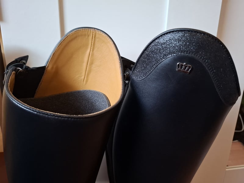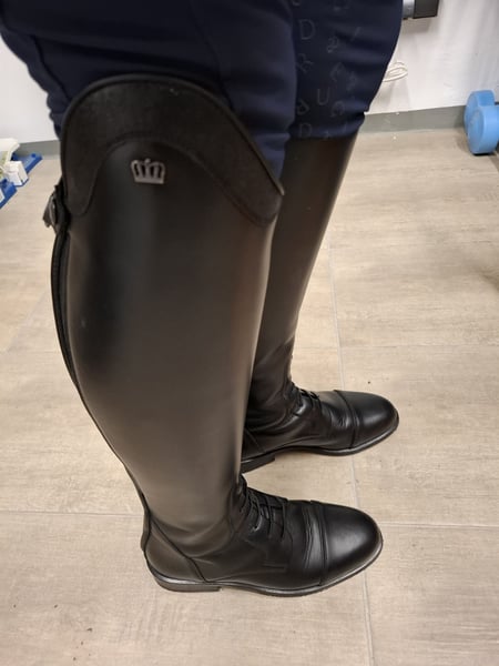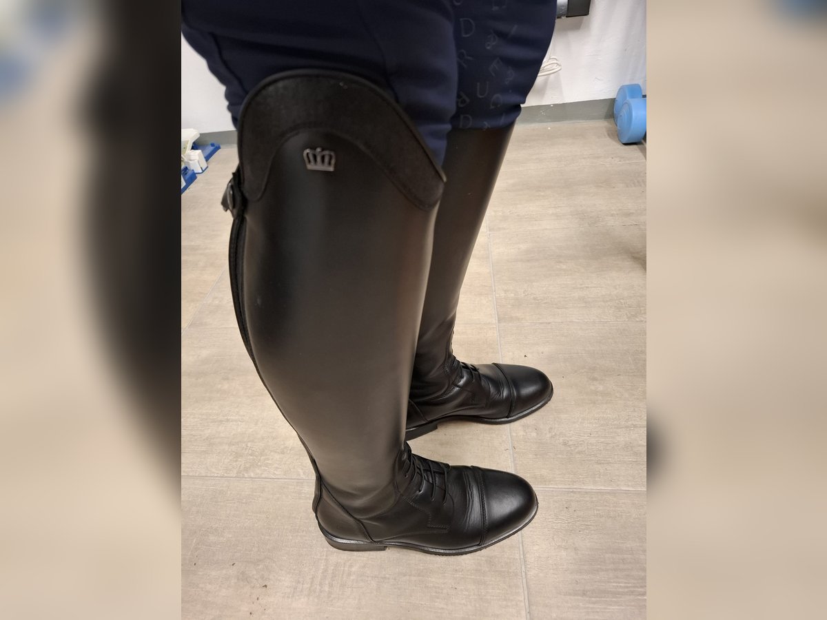 Ich verkaufe meine neuen Lederreitstiefel von der Marke Kingsley in Schwarz. Der Stiefel wurde nur einmal zur Anprobe getragen. Maße Schuhgröße 38, Maße der innensohle siehe bild, höhe 44 und oberes Wadenmaß ist 36. Der Stiefel hat am Reißverschluss elastikeinsätze und gummischnüre, für mehr Beweglichkeit. Der neupreis liegt bei 700 euro, hergestellt in Portugal. Meldet euch gerne wenn ihr interesse habt, nicht einfach nur merken :) Versand 7 Euro über dhl. Es ist ein Privatverkauf, daher ist eine rücknahme oder Umtausch ausgeschlossen! Nicht nur merken, gerne auch anfragen :)