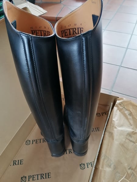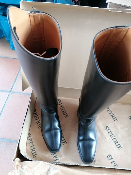 verkaufe fast neue sehr gut erhaltene Lederreitstiefel Gr. 5 von Petri weiter Größenangaben siehe Bilder 47-38 inkl Stiefelspanner und Anzieher + Versand Privatverkauf, keine Rücknahme, keine Garantie