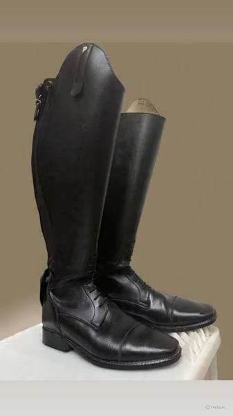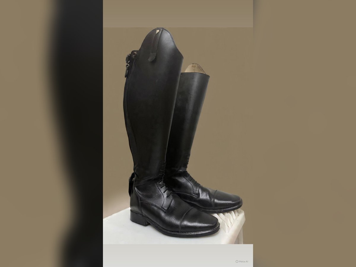 Ich verkaufe ein Paar hochwertige Reitstiefel der Marke Petrie (since 1857) in klassischem Schwarz. • Größe: 6½ • Höhe: 47 • Wadenweite: 40 • Mit Reißverschluss • Echtes Leder Die Stiefel sind gebraucht, aber in gutem gepflegten Zustand mit normalen Tragespuren (siehe Fotos). Reißverschlüsse funktionieren einwandfrei. Das Leder ist weich und gut erhalten. Petrie steht für hochwertige, langlebige Reitstiefel mit sehr guter Passform – ideal für Dressur oder Springen.