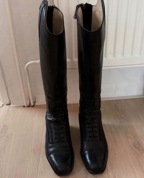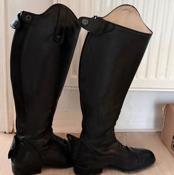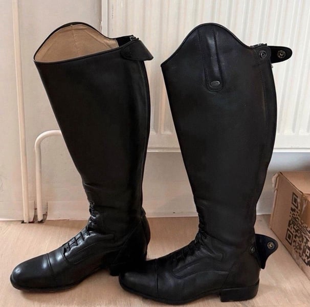 Verkaufe meine Felix Bühler Milano Reitstiefel. •Größe: 38 / Regular / Normal •Zustand: Wie Neu / Keine Mängel/ Top Zustand. •Farbe: Schwarz/ Leder •Abriebfeste Gummisohle •Sporenschutz •Italienisches Rindsleder außen Schnürung vorne •Weiches Schweinsleder innen Beschreibung: Das hochwertige Leder ist angenehm weich und zugleich sehr strapazierfähig. Das Innenfutter ist aus weichem Schweinsleder gefertigt. OPTI-Reißverschluss an der Rückseite mit einseitig angebrachtem Elastikeinsatz für eine perfekte Passform an die individuelle Wadenform. Im Bereich der Schnürung ist ein weiches, genarbtes Leder eingesetzt, das den tiefen Absatz im Steigbügel unterstützt. Der Fußbereich ist in schlanker Karréeform gefertigt. Bei Interesse gerne melden :)