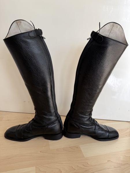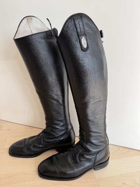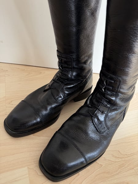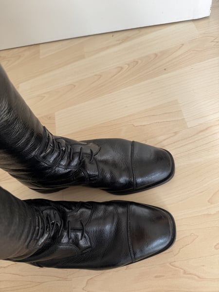 Ich verkaufe meine hochwertigen Reitstiefel von De Niro. Die Stiefel wurden wenig getragen und sind dementsprechend in sehr gutem Zustand. Reißverschluss, Sohle und Nähte sind voll funktionsfähig. An der Sohle und an der Fußspitze sieht man leichte gebrauchspuren sonst hat der Stiefel keine Mängel. Größe: 38 MC S Die Sohle wird natürlich nochmal gründlicher geputzt. Neupreis lag bei 300€ Privatverkauf - keine Garantie oder Rücknahme! Bei Interesse oder Fragen einfach melden – Anprobe bei Abholung möglich. Versand oder Abholung nach Absprache.