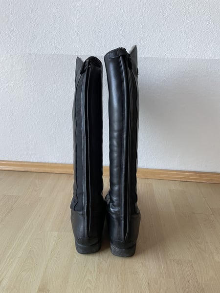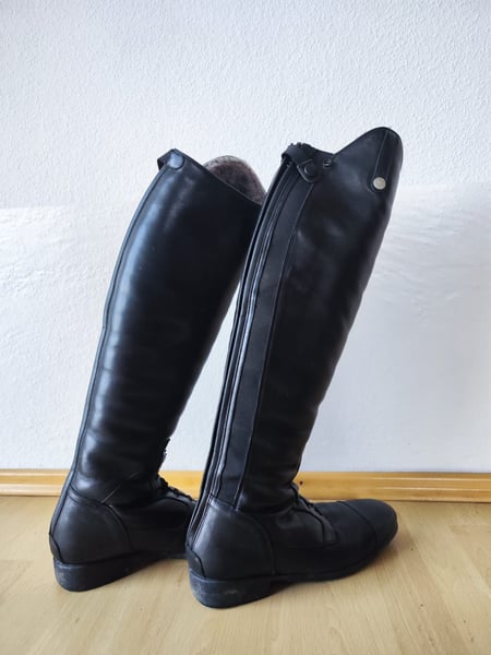 Zum Verkauf stehen meine kaum getragenen Winterreitstiefel in der Größe 44 HE. Damit haben sie eine Höhe von 54 und eine Wadenweite von 37. Bei Nichtbenutzung immer mit Stiefelspanner in Stiefeltasche gelagert. Der Neupreis lag bei 299€. Bei Fragen oder weiteren Bildern einfach melden. Versand gegen Übernahme der Versandkosten möglich. Es handelt sich um einen Privatverkauf ohne Garantie, Gewährleistung oder Rücknahme.