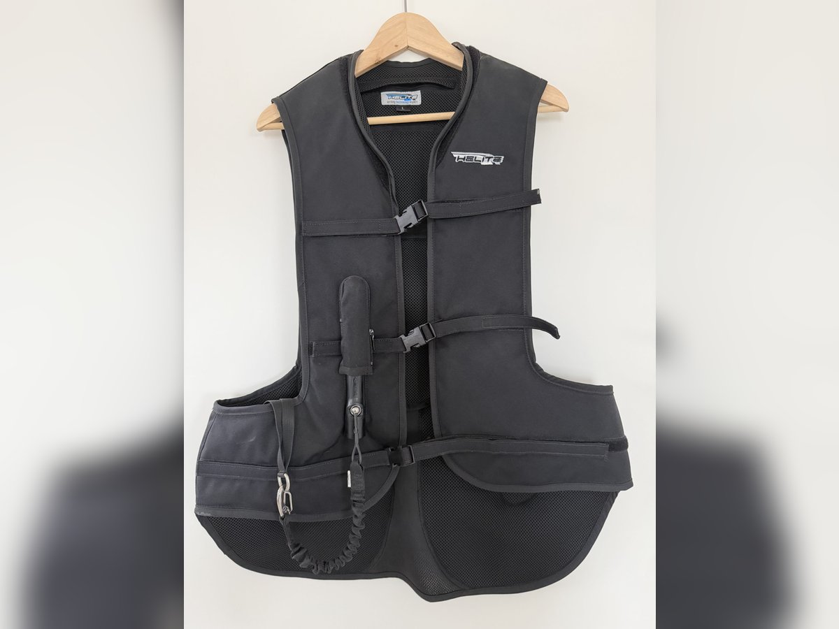 Die Weste wurde nur wenige Male getragen. Kein Sturz. Eine Kartusche ist im Lieferumfang enthalten. Bei Übernahme der Versandkosten kann die Weste verschickt werden . HELITE AIRBAG WESTE AIRJACKET Die Sicherheitsweste von Helite ist mit einem Airbag ausgestattet und bietet ein Schutzvolumen von bis zu 28 l, abhängig von der Größe des Airbags, um schwere Verletzungen zu verhindern. Das mechanische Airbag System der Weste funktioniert einfach und zuverlässig. Die Reißleine, die sich an dem Airbag befindet, wird nach dem Aufsteigen mit Hilfe des Y-Straps am Sattel befestigt und löst den Airbag im Falle eines Sturzes aus. In weniger als 100 Millisekunden entfaltet sich das volle Schutzvolumen des Airbags. Für eine Reaktivierung des Airbags muss ein Austausch der Kartusche erfolgen. Aufgrund der Materialzusammensetzung der Weste ist sie besonders leicht und kompakt, wodurch der Tragekomfort für den Reiter erhöht wird. Der Futterstoff der Weste besteht aus 3D Airmesh und ist daher sehr atmungsaktiv. Mithilfe der verstellbaren Verschlüsse auf der Vorderseite kann die Weste einfach angelegt und individuell an die eigenen Bedürfnisse angepasst werden. Um den Reiter nicht in seiner Bewegung einzuschränken, ist die Weste mit einem weichen Kragen und großen Armausschnitten versehen und dank der strapazierfähigen Textilien passt die Sicherheitsweste über jede Kleidung. Um den vollen Schutz zu garantieren, darf sie nicht unterhalb eines anderen Kleidungsstücks getragen werden.