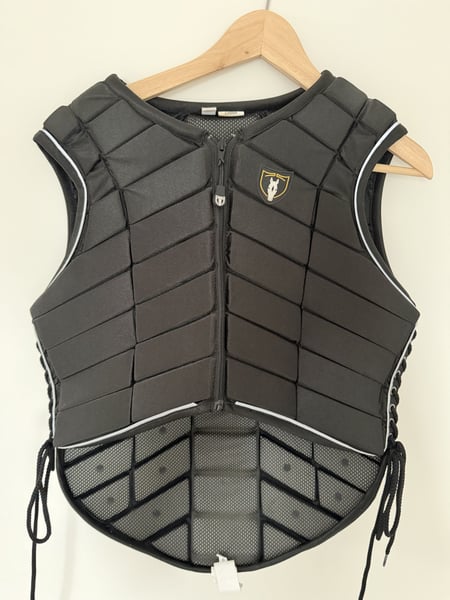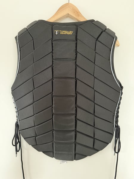 Sehr selten getragen. Neuwertiger Zustand. Kein Sturz. Tipperary Eventer Vest Flex Pad Design Weste ist die am meisten bevorzugte von Weltklasse-Fahrern. Eigenschaften: Nicht einengend, konturiert, individuelle Passform, leichtes und atmungsaktives Durasport-Innenfutter mit Micro-Mesh-Innenfutter und belüfteter Polsterung. Reißverschluss vorne mit seitlicher Spitzenverstellung. Gebogene untere Vorderseite – weniger Einschränkung. Verlängerte Rückseite – geschütztes Steißbein Eventerweste mit Schnürung an den Seiten ist eine bewährte Sicherheitsausrüstung Dual-Density-Polstersystem bietet hervorragende Stoßdämpfung und Aufprallreduzierung Flexible Polsterung und Konstruktion ermöglichen maximale Mobilität und erhöhte Luftzirkulation Leichter und atmungsaktiver Durasport oder Micro-Mesh-Bezug