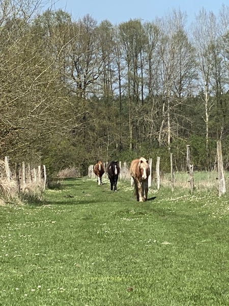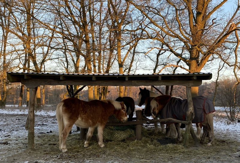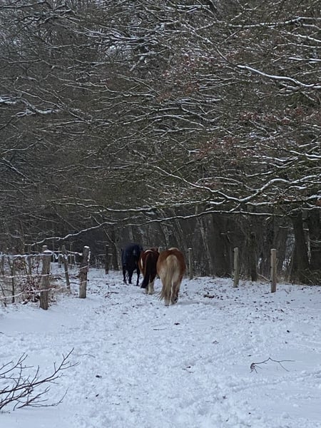 In unserer Rentnergruppe sind noch 1-2 Plätze frei. Wir freuen uns auf freundliche Ponies/Pferde bis 160cm Stm! :-) Die Senioren leben bei uns im Offenstall und großen Paddock mit Zugang zu 1 km (zeitweise 1,7km) Paddock Trail. Hier können sie etwas Gras und Laub zupfen oder einfach spazieren gehen. Diese stetige Bewegung tut den Arthrosen unserer derzeit 23 - 35-jährigen Belegschaft sehr gut. Auf dem Paddock steht eine große, überdachte Heuraufe mit Rundballen unter Netz (großmaschig), sowie die frostfreie Tränke. Die Naturböden sind bei fast jeder Wetterlage matsch- und staubfrei. Zufütterung z.B. mit Heucobs ist bis 4mal täglich möglich. Weidegang auf 5ha Wiese je nach Aufwuchs und Jahreszeit. Regelmäßiges Misten sowie Gesundheitskontrolle sind selbstverständlich. Sonstiges: Reitplatz 30 x 90m, Naturboden Round Pen, teilüberdacht, 20m Spielwiese mit Agility und Extreme Trail Hindernissen schönes Gelände zum Reiten und Spazieren Solebox Sattelkammer und Aufenthaltsraum, beheizbar Hufpflegerin vor Ort Physio vor Ort Unterricht / Training / Kurse Vollpension. Preise je nach Pferdetyp, Aufwand und Bereitschaft zur Mithilfe ab 270€. Nun freuen wir uns auf neues Leben bei uns! :-)