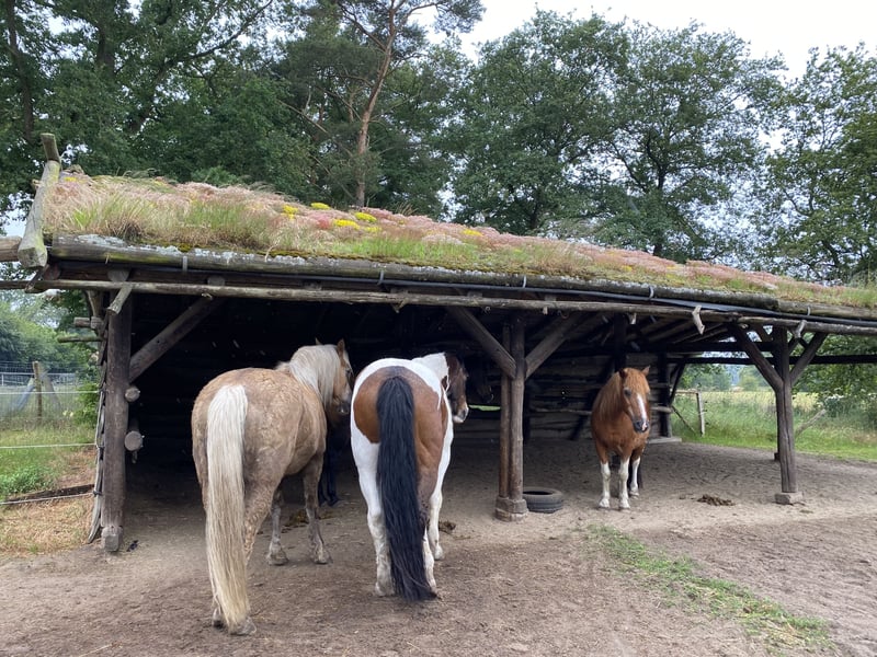 In unserer Rentnergruppe sind noch 1-2 Plätze frei. Wir freuen uns auf freundliche Ponies/Pferde bis 160cm Stm! :-) Die Senioren leben bei uns im Offenstall und großen Paddock mit Zugang zu 1 – 1,7km Paddock Trail. Hier können sie etwas Gras und Laub zupfen oder einfach spazieren gehen. Diese stetige Bewegung tut den Arthrosen unserer derzeit 23 - 35-jährigen Belegschaft sehr gut. Auf dem Paddock steht eine große, überdachte Heuraufe mit Rundballen unter Netz (großmaschig), sowie die frostfreie Tränke. Die Naturböden sind bei fast jeder Wetterlage matsch- und staubfrei. Zufütterung z.B. mit Heucobs ist bis 4mal täglich möglich. Dafür kommt jedes Pferd in seinen eigenen Futterpaddock, den es dann selbständig verlassen kann. Weidegang auf 5ha Wiese je nach Aufwuchs und Jahreszeit. Regelmäßiges Misten sowie Gesundheitskontrolle sind selbstverständlich. Sonstiges: Reitplatz 30 x 90m, Naturboden Round Pen, teilüberdacht, 20m Spielwiese mit Agility und Extreme Trail Hindernissen schönes Ausreitgelände Solebox Sattelkammer und Aufenthaltsraum, beheizbar Hufpflegerin vor Ort Physio vor Ort Unterricht / Training / Kurse Vollpension. Preise je nach Pferdetyp, Aufwand und Bereitschaft zur Mithilfe ab 270€. Nun freuen wir uns auf neues Leben bei uns! :-)