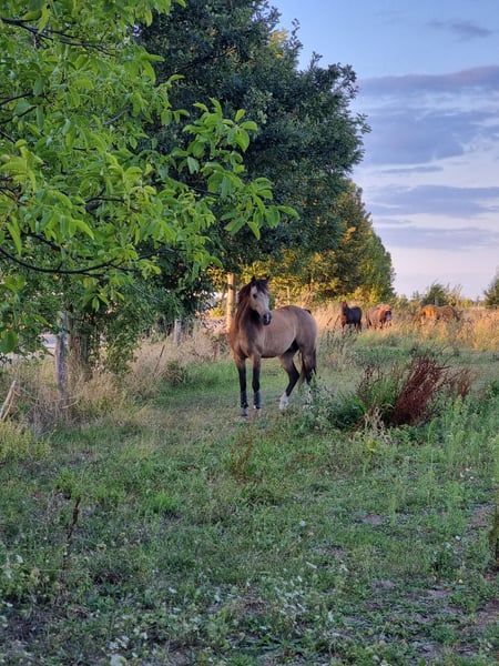 ~ Wir haben Plätze frei, auf unserem Vierseitenhof ~ Verfügbar ab dem 15.04.2026 Bei uns stehen Spaß und Pferdewohl im Vordergrund. Unser Hof ist familiär geführt und verfügt über eine gute Ausstattung. Zur Verfügung stehen: - Ein Stall mit genügend Auslauf - mit der Möglichkeit einer Krankenbox bei Bedarf - Die Mitnutzung einer trockenen Sattelkammer (Spind kann mitgebracht oder gestellt werden, Sattelhalter sind vorhanden) - Ein gemütlicher Wohnwagen steht als Reiterstübchen zur Verfügung - Hoftoilette - Mitnutzung der "Futterküche" - kleiner Sandround-Pen - Reitwiese mit Beleuchtung - (wenn erwünscht separate) Koppel von ca. März-Oktober Die angebotene Vollpension beinhaltet: - Weidegang von ca. März bis Oktober (Rausstellen und Reinholen) - die Pferde werden nachts, wenn gewünscht, videoüberwacht - Heu - tägliches Misten (außer samstags) > an 2 Samstagen im Monat soll das Misten komplett übernommen werden (pro Samstag ca. 1 1/2 Stunden Arbeit) - eine Integration in unsere kleine Herde (derzeitig 5 Pferde) ist möglich mögliche Zusatzleistungen gegen Aufpreis: - Deckenservice (Eindecken und Umdecken) - Waschservice (z.B. Halfter, Schabracken, Decken) - Inhaliergerät ausleihbar - Medikamentengabe, Betreuung bei Krankheit - Schmied-Service - Vergabe von Zusatzfutter - Betreuung und Bewegung der Pferde bei Urlaub / Abwesenheit - Reitunterricht / Beritt - Heunetze stopfen - Scheren - Transportservice im Notfall oder nach Absprache Wenn Ihr einen individuellen Hof mit artgerechter Haltung und einem harmonischen Miteinander sucht, freuen wir uns von Euch zu hören :) Ihr erreicht uns unter: 0172 3123126 oder gerne auch per WhatsApp