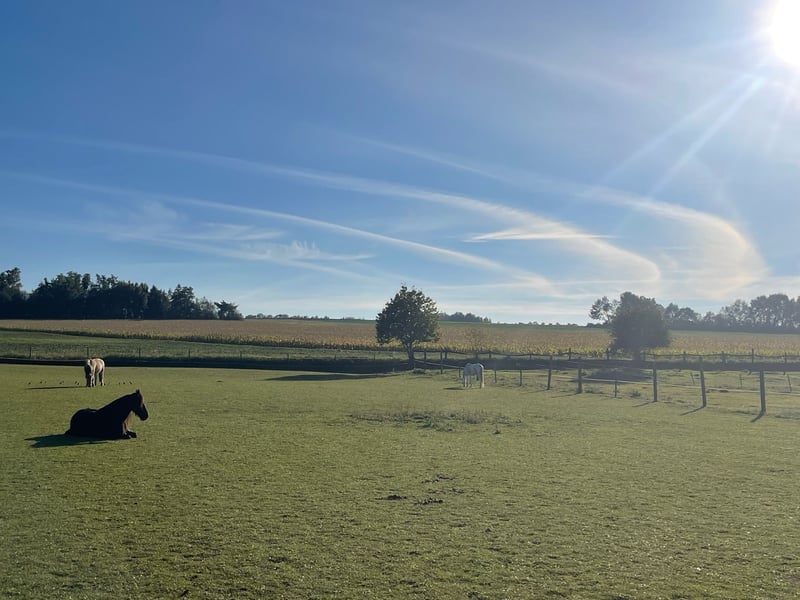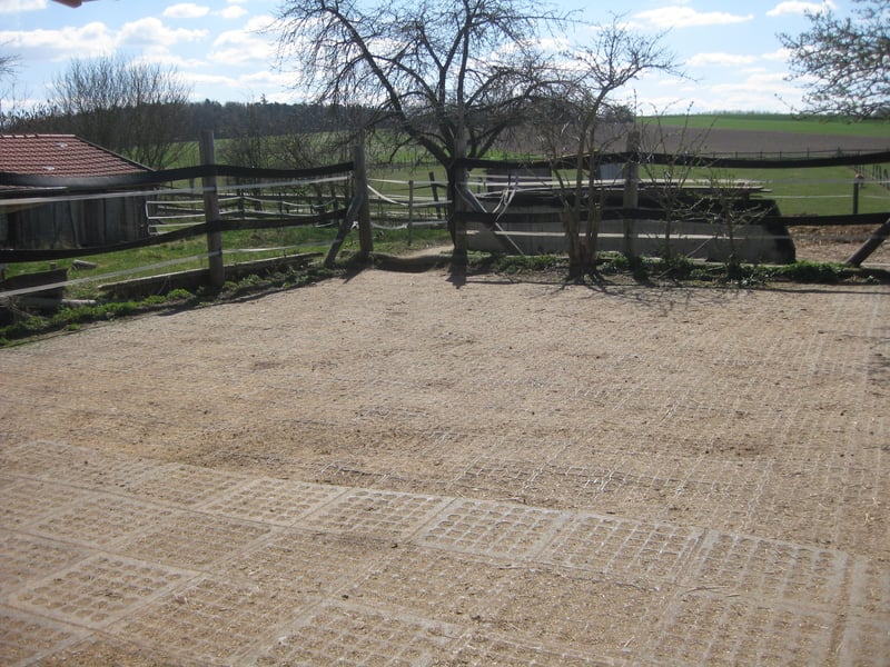Offenstall mit beh. Tränke, Heu-und Strohraufe, befestigter Paddockbereich, 1 ha Weide, Ganzjahresreitplatz mit Flutlicht, Mistentsorgung incl. Heu und Stroh können abgekauft werden. Kraftfuttergabe kann 2 x tgl. übernommen werden.