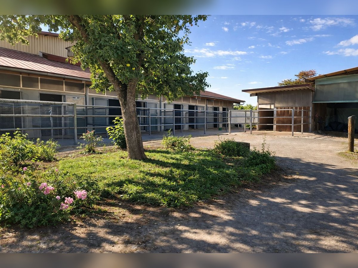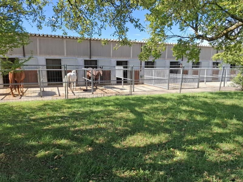 Bei uns wohnen Pferde wie Könige – oder zumindest wie sehr zufriedene Fellnasen mit ständig vollem Bauch. Heu bekommen sie rund um die Uhr aus XXL-Raufen mit 25 kg Fassungsvermögen – wer da noch Hunger hat, hat wirklich sportliche Zielen. Und für dich heißt es nicht mehr nachts im Schlafanzug mit Stirnlampe nachfüttern. Natürlich gibt’s bei uns täglichen Weidengang, damit dein Vierbeiner frische Luft schnappen, Sonnenbaden und seine Sozialkontakte pflegen kann (manche nennen es „Grasen“, andere „Stalltratsch“, aber pssst). Außerdem haben wir schon vor langer Zeit feststellen müssen, dass im Matsch wälzen ein Hobby unserer Pferde ist, welches wir Menschen einfach nicht nachvollziehen können. Auf unseren Matschpaddocks können sie sich allerdings ihre tägliche Ration Schlammwellness gönnen. Für die Fitnessabteilung ist auch gesorgt: Dir stehen ein Roundpen, Laufband und eine 20x60-Reithalle zur Verfügung – alles überdacht für diejenigen, die bei Regen nicht schwimmen wollen. Reitweise? Egal. Ob klassisch, Western oder Kunstreiten mit Flügeln bei uns darf jeder ran. Untergebracht werden die Pferde standesgemäß in Paddockboxen. Diese sind so komfortabel und geräumig, dass du kurz überlegst, ob du nicht selbst einziehst. Mit 15 m² Innenfläche und 12 m² angrenzendes Paddock an jeder Box hat dein Pferd genügend Platz sich zu entfalten und morgens bei Sonnenaufgang seine Yoga-Übungen zu machen. Vor der Boxentür wartet der Naturpark Schönbuch – Ausreitgelände deluxe. Quasi wie National Geographic in 3D, nur besser. Und das alles so abgeschieden und idyllisch, aber so verkehrsgünstig gelegen, dass du in 15 Minuten vorm Büro in Stuttgart, Reutlingen oder Tübingen stehst. Unser Rundum-Sorglos-Paket besteht aus Tierarzt- und Hufschmiedservice und Medikamentengaben. Wer möchte wählt zwischen Vollpension (Luxus pur) oder Selbstversorger (DIY für Pferdebesitzer mit Ambition oder für die, die sich einreden, dass sie dann Geld sparen hust hust neue Schabrake hust hust neues Halfter hust hust). Kurz gesagt: Bei uns haben alle zwei- und vierbeinigen Bewohner das Rundum-Glücklich-Programm und du kommst nicht mehr mit schlechtem Gewissen und matschverkrusteten Stiefeln nach Hause.