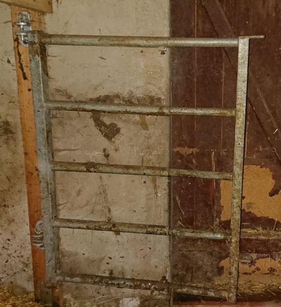 verschiedene Abtrennungen/Tore von Patura: alle Höhe 1,15m Bild 1: L 4,75-5,85m, NL 4,95-6,05m, mit stabilem Stützrad, gebraucht, 450€ VHB Bild 2: L 5,2-6,05m, NL 5,4-6,25m, mit Aussparung für Tränkebecken, gebraucht, 2 Stück, je 520€ VHB Bild 3: L 0,7-1,0m, NL 0,9-1,2m, gebraucht 160€ VHB Bild 4: nicht von Patura, aus V2A, L 5m, H 1,1m, Abstand 15cm, gebraucht, 450€ VHB Bei Abnahme mehrerer Abtrennungen/Tore Preisnachlass möglich. Auf Grund der Aufgabe der Mutterkuhhaltung stehen weitere Stalleinrichtungen zum Verkauf: Fressgitter, Rundraufen.