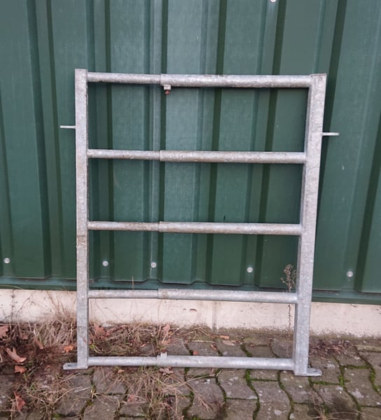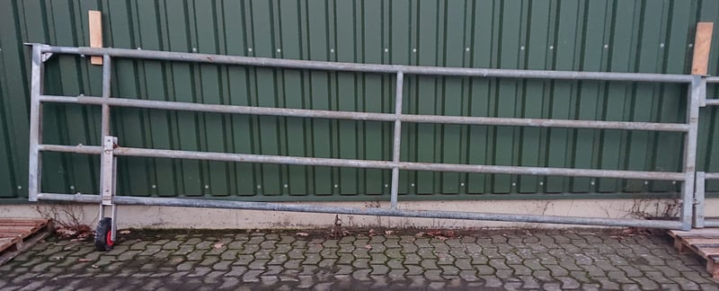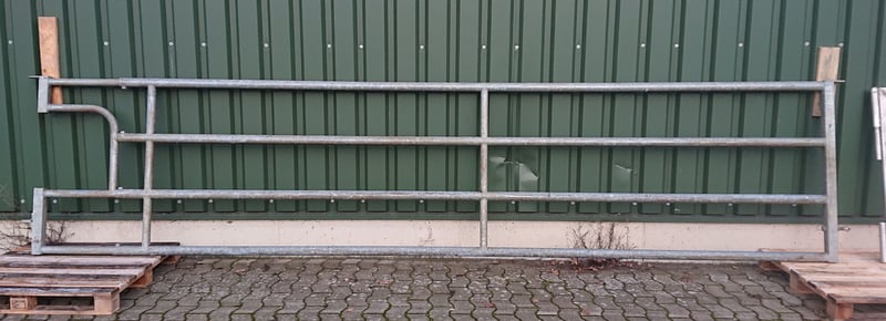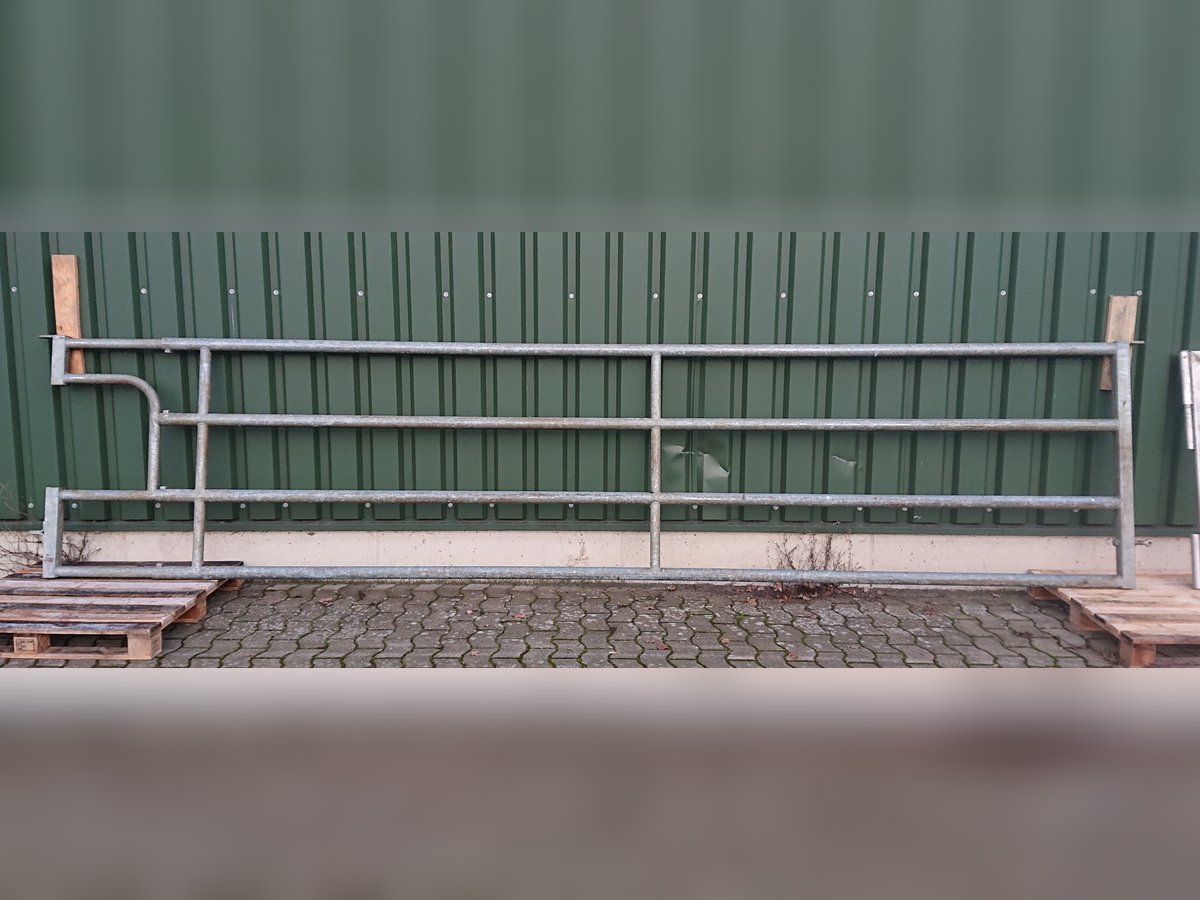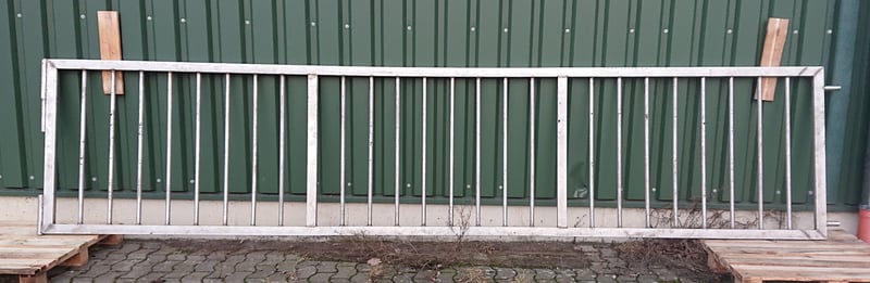 verschiedene Abtrennungen/Tore von Patura: alle Höhe 1,15m Bild 1: L 5,2-6,05m, NL 5,4-6,25m, mit Aussparung für Tränkebecken, gebraucht, 2 Stück, je 490 € VHB Bild 2: L 4,75-5,85m, NL 4,95-6,05m, mit stabilem Stützrad, gebraucht, 480 € VHB Bild 3: L 0,7-1m, NL 0,9-1,2m, leicht, gebraucht, 140 € VHB Bild 4: nicht von Patura, aus V2A, L 5m, H 1,1m, Astand 15cm, gebraucht, 430 € VHB Bei Abnahme mehrerer Abtrennungen/Tore Preisnachlass möglich. Aufgrund der Aufgabe der Mutterkuhhaltung stehen weitere Stalleinrichtungen zum Verkauf: Fressgitter von Patura und Raufe