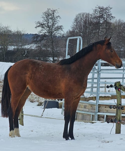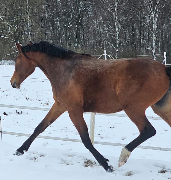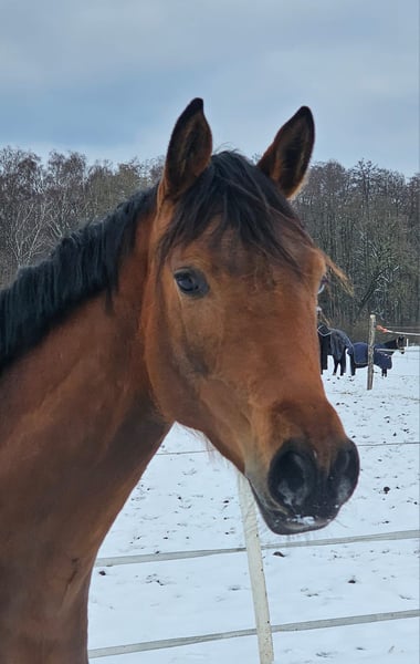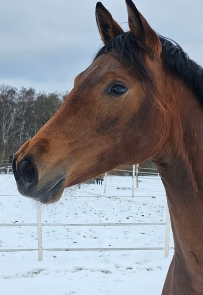 FInchen es una potra simpática y noble del semental Für immer Du, que es S exitoso hasta St. En el campeonato de potros de élite de Mecklemburgo, esta inteligente potra conquistó al jurado. Con 82 puntos (9,5 por raza y tipo de sexo), Finchen ganó el concurso en la clase Dt.R.