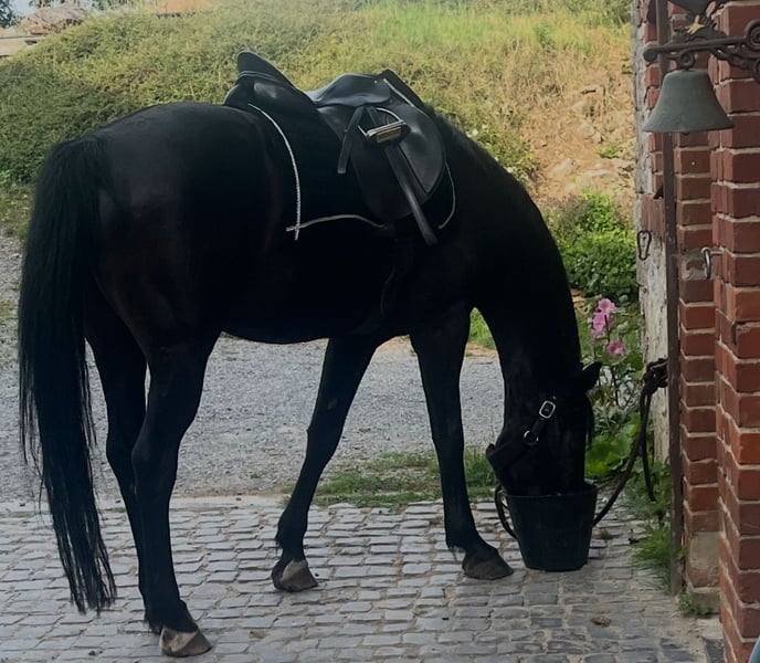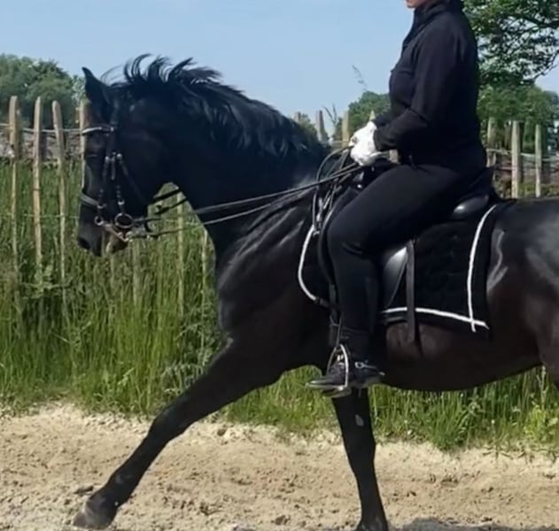 Dreamy ist ein zugewandter, verschmuster Begleiter, der es genießt seine Bezugsperson zu haben auf die er sich auch unterm Sattel einstellt und mit der er durch dick und dünn geht und alles für sie tut. Er ist im Umgang ein wahrer Schatz, zart und liebevoll - sensibel und feinfühlig unterm Sattel und verlangt dort einen ausbalancierten Reiter und korrekte Hilfen. Sein Wirbelengstand ist laut Tierarzt unbedenklich und wir haben ihn damit immer gesunderhaltend geritten und stets im Training gehabt. Man kann entspannt mit ihm ins Gelände. Dort ist er mutig und kennt Ausritte alleine oder in der Gruppe. Er ist dressurmässig geritten, kennt Seitengänge, Außengalopp, fliegende Wechsel, halbe Tritte und beginnt z.Z. Arbeitspirouetten. Er wurde auch sporadisch gesprungen und zeigt dabei Talent und Willen. Auf Turnieren waren wir nicht, damit hat er keine Erfahrung. Er ist ein toller Partner für den ambitionierten Freizeitreiter. Ich gebe ihn schweren Herzens und nur an die passende Person und nachweisliche artgerechte Haltung ab. Keine 24 Stunden Boxenhaltung.