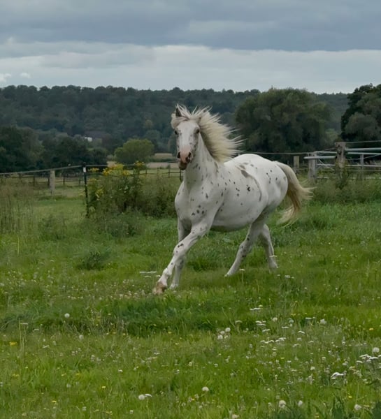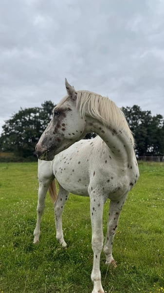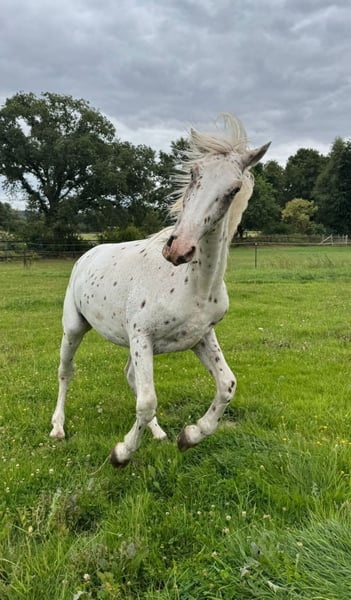 **Sales Advertisement: Dreamy Knabstrupper Stallion** For sale is a beautiful Knabstrupper stallion from the year 2023, a true eye-catcher. He is well-socialized and has already gained initial experiences with people. His lively yet balanced nature makes him an ideal partner for riders looking for a reliable and strong-charactered horse. He has 10 lifetime breeding jumps with the KNN and was rated an 8 there, which speaks for his conformation quality. However, he can also be gelded to pursue a career as a baroque and typy gelding, which I can already envision in piaffes and gallop pirouettes. He is confident, intelligent, and thoughtful, yet fine and sensitive, but also quite dominant. If you are interested or have further questions, please feel free to contact me. Don't miss this opportunity to acquire such a special stallion!