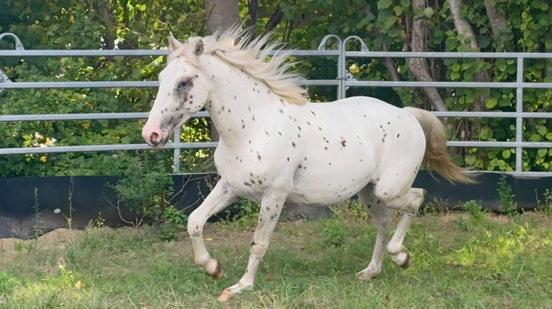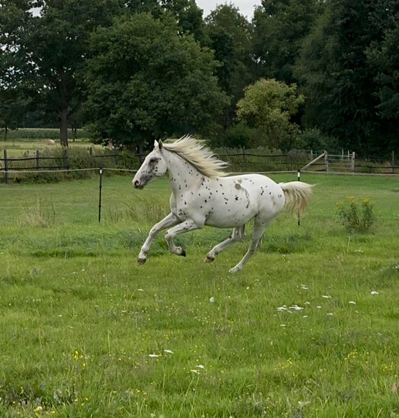 **Ogłoszenie sprzedaży: Wspaniały ogier Knabstrupper** Na sprzedaż piękny ogier Knabstrupper z 2023 roku, prawdziwa ozdoba. Jest dobrze zsocjalizowany i ma już pierwsze doświadczenia w obcowaniu z ludźmi. Jego żywiołowy, a jednocześnie zrównoważony charakter sprawia, że jest idealnym partnerem dla jeźdźców, którzy szukają niezawodnego i silnego w charakterze konia. Posiada 10 skoków hodowlanych na całe życie w KNN i został tam oceniony na 8, co świadczy o jego jakości hodowlanej, ale może również zostać wałachem, aby nic nie stało na przeszkodzie jego karierze jako barokowego i typowego wałacha, którego już teraz widzę w piaffach i piruetach w galopie. Jest pewny siebie, inteligentny i myślący, a jednocześnie delikatny i wrażliwy. Jednak również dość dominujący. W przypadku zainteresowania lub dodatkowych pytań, chętnie służę pomocą. Nie przegap tej okazji, aby nabyć tak wyjątkowego ogiera!