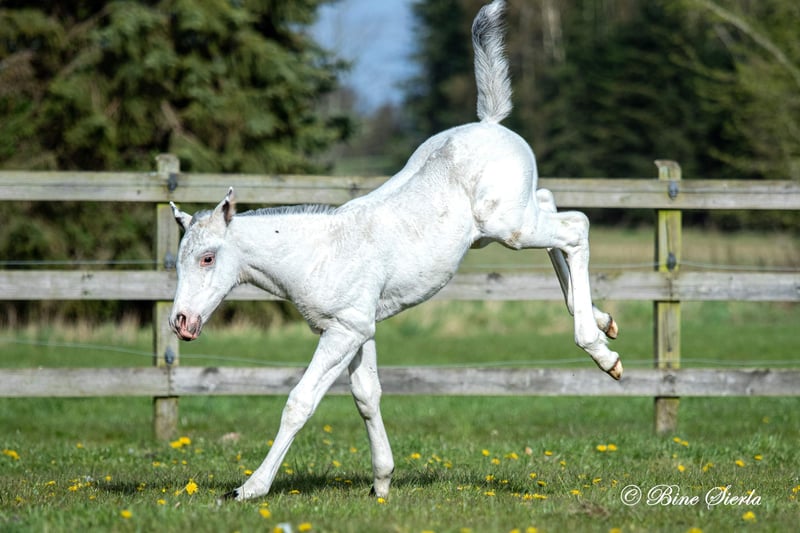 Étalon homozygote noir tacheté léger, de type Knabstrup. Natskygge/Nightshade est un gentil et calme étalon pur-sang original Knabstrup de 12/16, ainsi qu’un étalon PRE espagnol de Grand Prix 4/16, idéal pour la reproduction, l’équitation ou le carrousel. Facile à manipuler, en bonne santé, élégant, il serait parfait en compétition de dressage. Le noir homozygote tacheté léger est très recherché pour l’élevage de Knabstrup, car il garantit un poulain tacheté lorsqu’on croise un homozygote avec une couleur unie comme le noir, le brun ou le rouge. Très beau étalon pur-sang original Knabstrup de 16/16, destiné à la reproduction, à l’équitation ou au carrousel. Type classique ancien, très bien construit pour une collection. Facile à manipuler, doux, en bonne santé, avec beaucoup de joli pelage, il deviendra le meilleur ami de son cavalier. Pour plus d’informations et de photos, veuillez consulter notre site internet… Stutteri Knabstrup 2025 Facebook