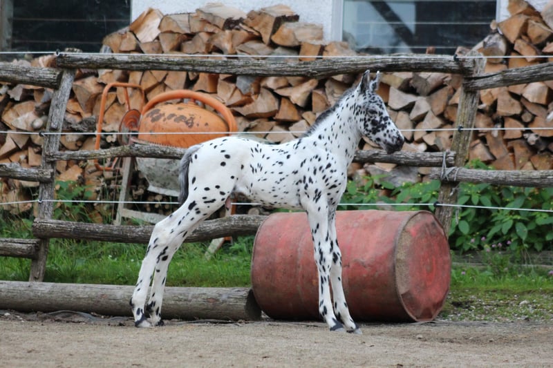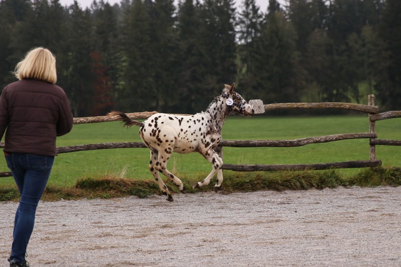 Löwenherz Hij is goedgekeurd bij de KNN en heeft zijn prestatietest met succes afgelegd. Hij toonde zich werkelijk zeer mooi onder het zadel. Hij is leergierig en heeft een prachtige karakter. Daarnaast is hij ook nog eens beeldschoon, of het nu zomer of winter is. Hij heeft zijn eerste veulencollectie al achter de rug en toont zich daarbij respectvol en als een echte gentleman tegenover de dames. Hij dekte zowel vrij als aan de hand. Door zijn kleur is hij perfect voor de witgeborenen, mocht men een bont veulen wensen. Met tijgerschecken bestaat de mogelijkheid om zowel tijgerschecken als eenkleurige veulens te krijgen. Al zijn veulens waren correct gebouwd, mooi getekend, of het nu met stippen of eenkleurig was. In 2024 verwachten we nog 3 extra veulens. De dekvoorwaarden zijn ofwel op mijn homepage te vinden, of u kunt mij een bericht sturen en ik stuur ze u toe. Er zijn paddockboxen beschikbaar voor de gastmerries, en er is ook een rijbaan om de hoeven te bewegen. Zijn volledige afstamming is hier te vinden: https://www.allbreedpedigree.com/loewenherz17 De stal bevindt zich bij Roßhaupten. Laatste foto's van zijn nakomelingen!