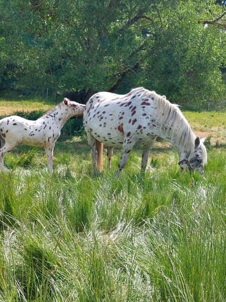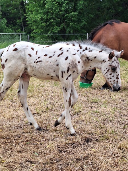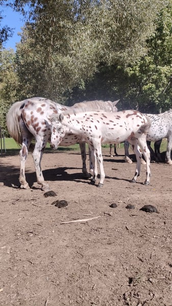 **Sales Advertisement: Dreamy Knabstrupper Stallion** For sale is a beautiful Knabstrupper stallion, born in 2025. With his striking tiger-spotted coat, he attracts all attention. Equipped with very nice basic gaits, this already long-legged stallion will later bring a lot of joy in classical dressage or any other discipline of riding. The little one has been raised robustly outdoors, is healthy, and very correctly built. We wish for him to find loving and supportive hands. In October, he will come with his mother from summer pasture and will be available for pickup starting in November. By then, he will have mastered the foal ABC. If you are interested or would like videos and further information, please feel free to contact me (preferably via WhatsApp).