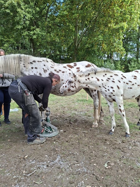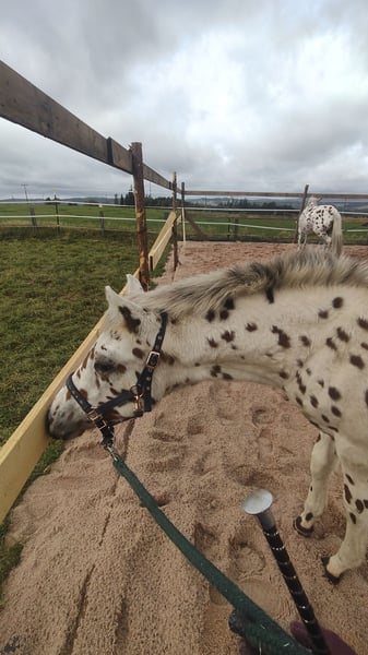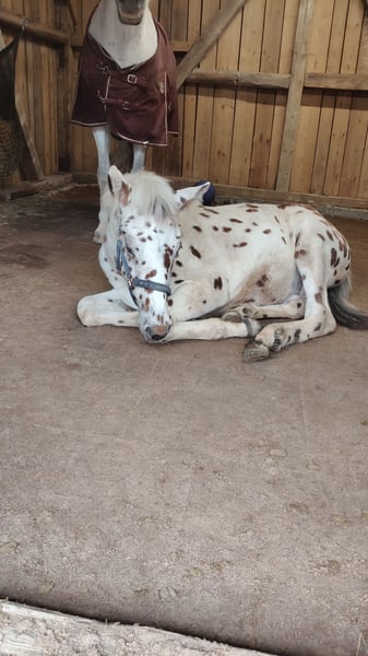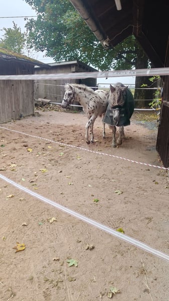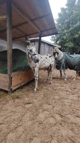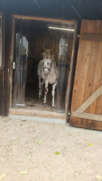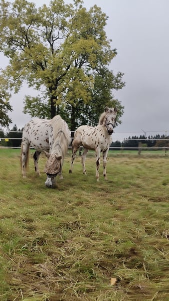 Zum Verkauf steht ein wunderschöner Knabstrupper Hengst aus 2025. Dieser kleine Mann ist auf der Suche nach seinem Für-Immer-Zuhause da wir ihm bei uns am Hof keine artgerechte Hengstaufzucht ermöglichen können. Hunter ist ein Traum von einem Fohlen: bildschön, korrekt gebaut, gelehrig, verschmust und neugierig. Bis vor einer Woche stand er mit seiner Mama noch auf der Sommerweide, jetzt gibt er bereits brav alle Hufe, ist halfterführig und genießt jede Putz- und Kuschel-Einheit. Wir sehen Hunter später in der klassischen Dressur, da er sehr schöne Gänge und eine natürliche Aufrichtung mitbringt. Er bekommt, wie seine Mama, sehr volles Langhaar inklusive Doppelmähne. Für weitere Bilder und Videos sowie Fragen stehen wir gerne zur Verfügung. Es gilt Platz vor Preis. Wir wünschen uns für den Kleinen liebevolle, fördernde Hände.