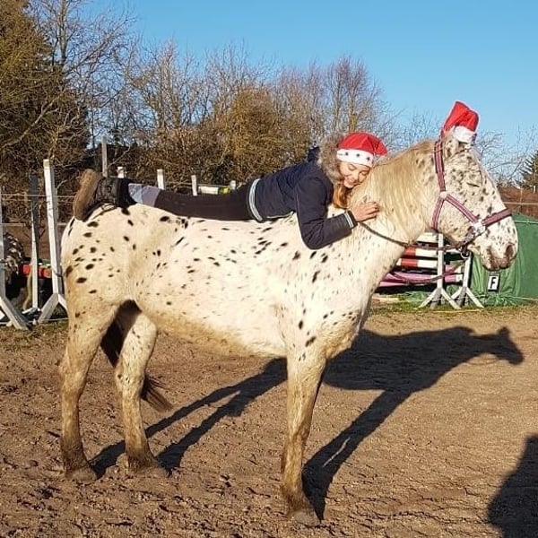 Wir suchen für unsere Pippi-Langstrumpf-Knabstrupperstute Mia eine liebevolle und zuverlässige Reitbeteiligung für 1–2 Mal pro Woche. Mia ist ein echtes Verlasspferd, sie lässt sich von fast nichts aus der Ruhe bringen und ist eigentlich immer gut gelaunt. Nur bei sehr starkem Sturm findet sie das Wetter nicht ganz so toll, bleibt dabei aber trotzdem brav und gut händelbar. Im Gelände ist Mia super entspannt und genießt sowohl ruhige Ausritte alleine als auch in der Gruppe. Leider hat sie sich in jungen Jahren verletzt, weshalb Springen für sie nicht mehr möglich ist. Dafür macht sie aber alles andere mit Freude: Dressurarbeit, entspannte Ausritte, Bodenarbeit oder einfach abwechslungsreiche Beschäftigung. Hauptsache, sie darf mit ihrem Menschen zusammen arbeiten. Mia ist ein Pferd, das sehr bemüht ist alles richtig zu machen und ihrem Menschen gefallen möchte. Sie liebt Aufmerksamkeit, klare Kommunikation und Menschen, die sich Zeit für sie nehmen. Was du mitbringen solltest: • mindestens 18 Jahre alt • sicheres Reiten auf E-Niveau • Zuverlässigkeit und Verantwortungsbewusstsein • Freude daran, nicht nur zu reiten, sondern auch abwechslungsreich mit Mia zu arbeiten (z. B. Bodenarbeit, Ausritte, gymnastizierende Arbeit) • Das Wohl des Pferdes sollte für dich immer an erster Stelle stehen Zum Hof: Unser Stall liegt in Berlin Gatow und ist sehr gut mit den öffentlichen Verkehrsmitteln erreichbar. Vor Ort gibt es: • eine kleine Reithalle • einen überdachten Roundpen • einen weiteren Roundpen • zwei Außenreitplätze • sowie ein schönes Ausreitgelände Kosten: • 1x pro Woche: 60 € • 2x pro Woche: 100€ Wenn du dir vorstellen kannst, Mia kennenzulernen und uns zu unterstützen, freuen wir uns sehr über eine Nachricht. Erzähl uns gerne kurz etwas über dich und deine Reiterfahrung. Wir freuen uns darauf, dich kennenzulernen! ☺️