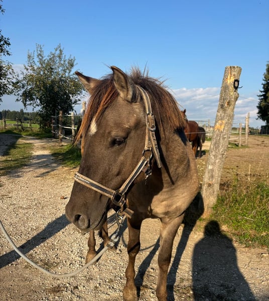 Endmaß etwa 135cm Hengst, aber auch neben Stuten kein bisschen hengstig! Kennt führen, putzen, anbinden, Hufe geben, wird derzeit anlongiert, absolut unkompliziert und brav! Auch in Kinderhänden problemlos und lieb. Wird bestimmt ein ganz unkompliziertes und liebes Reitpony! Zieht aus mit Grippe-Tetanus-Impfung, Pass und frisch gemachten Hufen! Gerne auch als Wallach, Kastration noch vor Auszug möglich!