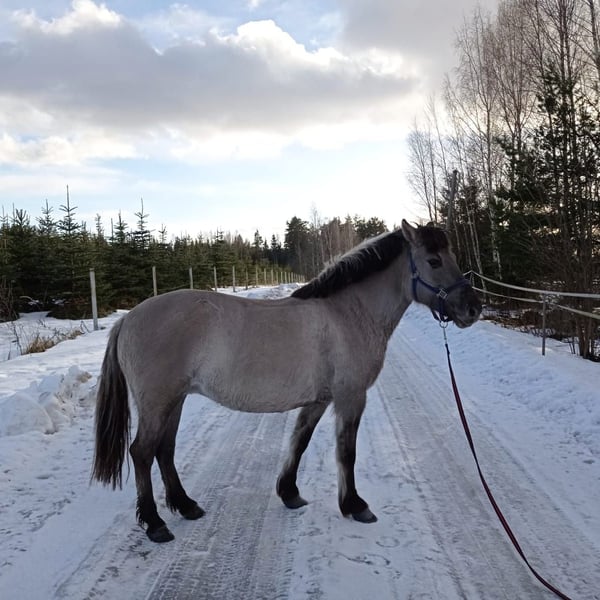 Healthy konik mare with good and very comfortable gaits, nice, comfortable jump. Forward going, quick and stable gaits. Good for trailrides too. Good broodmare too, fertile, easy pregnancy and birth. Have had 2 beautifull and healthy foals. Can live outside 24/7. No bad habits. Teeth and hooves done regularly.