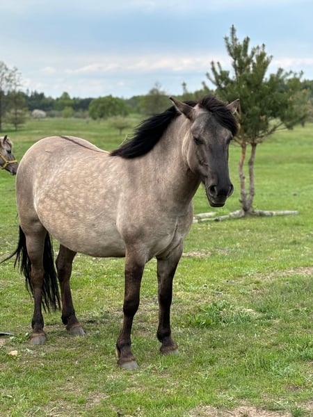 Polish Konik mare with full pedigree and PZHK license. Registered in the main breeding book of the Polish Konik. Sired by proven bloodlines. The mare is respectful towards humans, regularly trimmed and hoofed by the farrier. Our horses are kept in a stabling-free system. She is a healthy, strong, and weather-resistant horse. Assistance with transportation organization is provided upon purchase. A veterinarian is available on-site.
