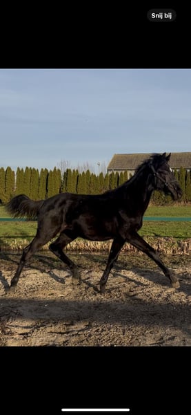 Zwart hengstveulen van Extreme U.S (21 april 2025) Moeder is Elite IBOP dressuurmerrie, vaders opa is Jazz Mijn hengstveulen is toe aan een nieuw huis en vriendjes om mee te spelen Voila is een lief, aanhankelijk, nieuwsgierig en leergierig veulen. Is vrij bomproof; vuurwerk, auto’s, trekkers, maar ook bijvoorbeeld schapen, geiten en honden is hij niet bang van. Het is en blijft een jonge hengst dus heeft af en toe een duidelijke mening, maar is makkelijk te corrigeren. Kan eenkennig overkomen Voila heeft een medisch verleden, volledig hersteld, röntgenfoto’s aanwezig en netjes geënt Zoek jij nog een toekomstige dressuurtopper en/of een paard voor recreatie, bied je een goed huis( dit kan zowel opfok, aan huis oidg zijn) en bereid om liefde en aandacht te geven, stuur dan vooral een berichtje Meer informatie en vragen mag u vooral een pb sturen natuurlijk! Keuren k.k Prijs bespreekbaar
