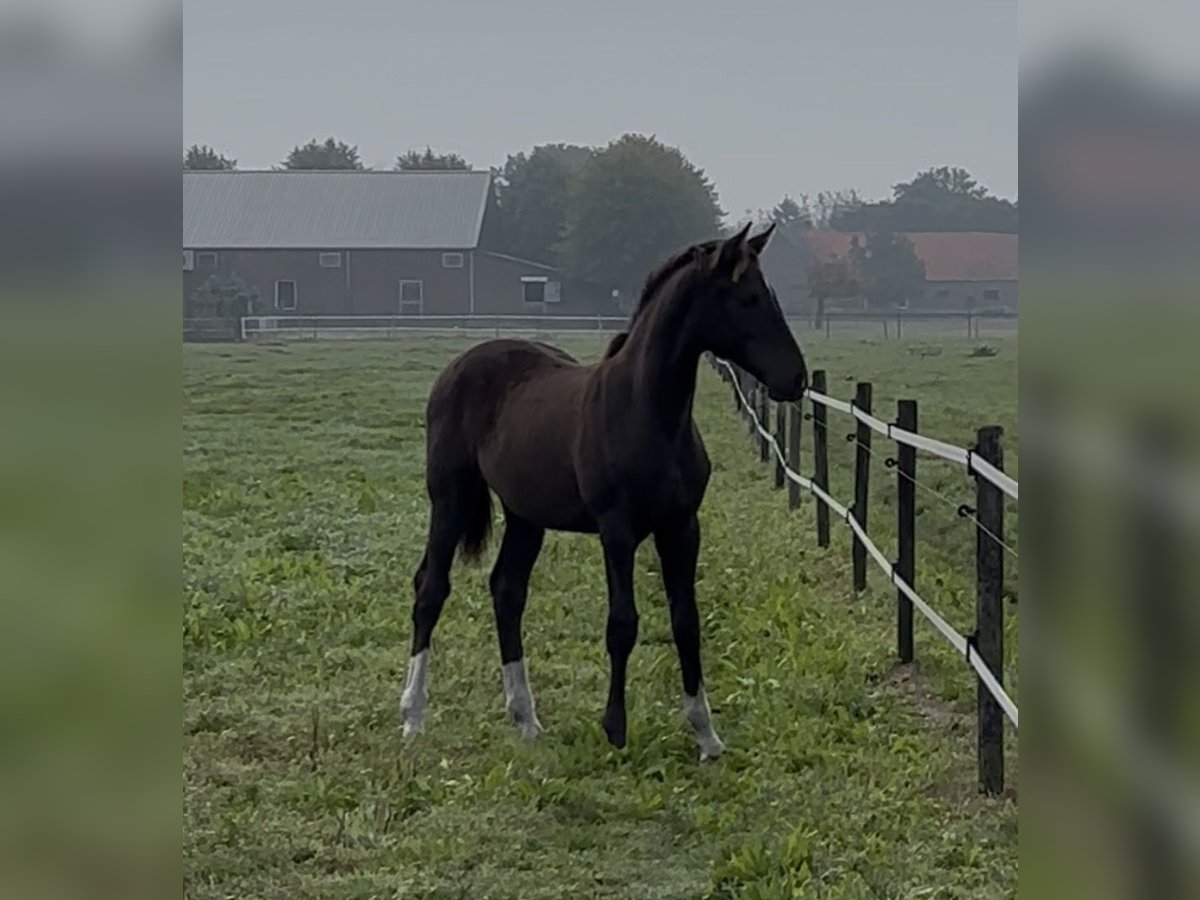 Bent u op zoek naar een veulen met uitstraling, kwaliteit en karakter? Maak dan kennis met ⚜️Valuno de Elegante CH ⚜️– een uitzonderlijk mooi en veelbelovend hengstveulen, ontstaan uit een unieke combinatie van Spaans temperament en Nederlandse dressuurkwaliteit. ⸻ 📍 Afstamming met toekomst • Vader: Elegante de Millan III CH - PRE Apto gekeurd • Moedersvaderlijn: Glock’s Toto Jr. x Ferro • Geboren op: 18-04-2025 • Verwachte stokmaat: ca. 1,70 m + Deze bijzondere combinatie verenigt: • Het vermogen tot verzameling, de expressie en rijbaarheid van de PRE • Met de moderniteit, elasticiteit en werkwilligheid van het KWPN Een pedigree dat wijst op een veelbelovende toekomst in de dressuursport. ⸻ 📍 Opfok met visie & liefdevolle zorg Onze veulens groeien op onder optimale omstandigheden: ✔️ 24/7 weidegang vanaf de geboorte ✔️ Sterke ontwikkeling van botten en pezen door natuurlijke beweging ✔️ Opfok in familieverband (merries en veulens samen) ✔️ Later in een gemengde kudde met paarden van verschillende leeftijden ✔️ Duidelijke sociale hiërarchie voor een evenwichtige opvoeding Het resultaat: Een mentaal stabiel, sociaal vaardig en fysiek sterk jong paard. ⸻ 📍 Vroeg gewend = ontspannen in het dagelijks leven Valuno wordt vanaf het begin gewend aan allerlei omgevingsprikkels: • Tractor • Bladblazer • Paraplu • Bosmaaier • Dagelijkse geluiden Met een ontspannen moeder aan zijn zijde leert hij dat dit allemaal heel normaal is. Reeds vanzelfsprekend voor hem: ✔️ Voetjes geven ✔️ Vaststaan ✔️ Poetsen & overal aangeraakt worden ✔️ Hoefsmid ✔️ Chippen ✔️ Ontwormen Alles verloopt probleemloos. ⸻ 📍 Conclusie Valuno de Elegante CH is niet alleen een echte blikvanger met een edele uitstraling – hij beschikt over de genetische aanleg, de solide opfok en het juiste fundament om: • Te schitteren in de dressuurring • Een betrouwbare partner te worden • Zijn toekomstige eigenaar jarenlang plezier te geven Een veulen met kwaliteit, karakter en potentieel – klaar voor een mooie toekomst. 🐎✨ Bij interesse of voor meer informatie (filmpje) horen wij graag van u.