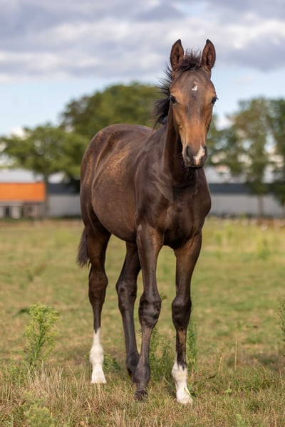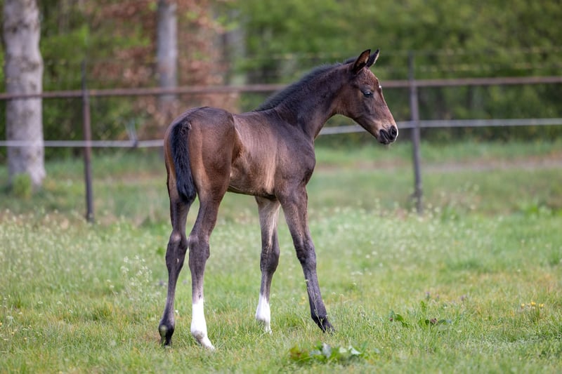 Movimiento, carácter y una actitud excepcional. ¿Buscas una compañera de doma para toda la vida? Vinci es dócil en el trato, con mucha disposición y cuenta con tres pasos básicos sólidos, además de una clara voluntad de complacer. Proviene de la reconocida línea de yeguas Fastrade del KWPN, que ha dado origen a numerosos caballos de deporte y sementales aprobados. Su madre es la yegua Le Strade dell'Amore, inspeccionada y aprobada por Stb-ext, D-OC y PROK. Es descendiente del lamentablemente fallecido semental Ferguson (por Floriscount). Ferguson fue un destacado proveedor en el Campeonato del Mundo de Caballos Jóvenes de Doma 2022 y, con seis medallas, sus descendientes dominaron la PAVO-cup en 2021 y 2022. Vinci es su primera cría. Se estima que su altura final será de aproximadamente 1,65 m a 1,67 m. En la línea materna directa encontramos, entre otros: * VIC TC (por Jazz) — aprobado por KWPN, nivel PSG/Ligth Tour * Wiebe (por OO Seven) — seleccionado para la prueba de rendimiento KWPN * Gentleman (por Charmeur) — seleccionado para la prueba de rendimiento KWPN * Astrade II (por Tango) — nivel Lichte Tour * Intro K (por Apache) — aprobado por KWPN, medalla de plata en CHIO Aachen 2024 Young Riders, #1 en el Ranking Mundial Juvenil FEI con Kate Kyros (AUS)