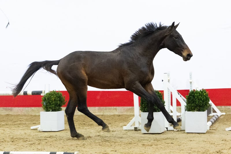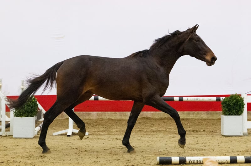 Der zweijährige Tinus SF ist äußerst leichtfüßig in der Bewegung und möchte beim Springen keine Fehler machen. Vater Poker de Mariposa hat mit Willem Greve sein Debüt in der 1,50-m-Klasse am 5. Mai in Mannheim gegeben. Als Sohn von Nabab de Reve aus der 1,60-m-Grand-Prix-Merrie Ilena de Mariposa (Berlin) ist er äußerst interessant gezogen. Großmutter ist die Spitzen-Springmerrie Flora de Mariposa (For Pleasure), die über Jahre hinweg sehr erfolgreich mit Penelope Leprevost (FRA) war. Mutter Culottie W (Springen bis 1,20 m) stammt von Emilion ab und ist die präferenzierte Leistungselitemerrie Vuklahoma W (Guidam x Burggraaf). Vuklahoma hat bereits drei Grand-Prix-Pferde hervorgebracht: C. Kulottie W Z (Springen bis 1,60 m), Lizelottie W (Springen bis 1,55 m) und Demilion W (Springen bis 1,50 m). Das Pedigree führt zurück auf Ielottie W (Voltaire x Ramiro Z), Mutter des 1,60-m-Grand-Prix-Pferdes Richmond W und Halbschwester der 1,60-m-Grand-Prix-Pferde Jarno W, Lottie W, HBR Tennessee W und Amadeus. Die berühmte Vindicat W (Guidam), Olympiasieger im Mannschaftsspringen in London, stammt aus derselben Familie.