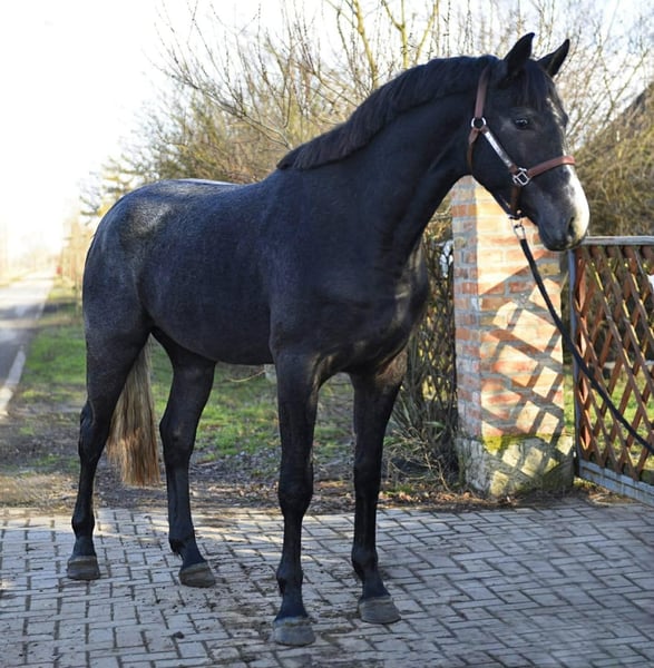 Quality 3-year-old stallion, correct build with exceptional jumping ability and expressive movement. Height: 168 cm Pedigree: Father: ORAK D’HAMWICK 1.60 jump Result Toulon x Tangelo VD Zuuthoeve Dam line by Chacco Blue – Chach Fly Calm, easy temperament Promising sport and breeding prospect Can be gelded