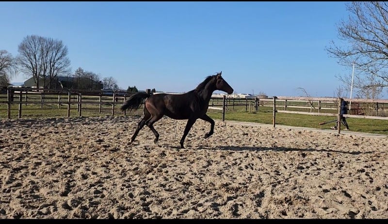 Affordable: A super good horse for someone on a tight budget. So, there is a slight imperfection... yes, that's correct. He was intended to go to the stallion licensing, but something happened during the pre-selection phase, resulting in him now having a "swinging leg" / cramping. He can trot and canter beautifully, but in the walk, he swings his hind leg outward to the front. He is a very handsome (and sweet/quiet) Fürstenball x Olivier stallion. KWPN Gelderlander. 2.5 years old. Comes with a complete set of X-ray photos, including back and neck. Still somewhat green/untrained. Please send a message or call for more information.