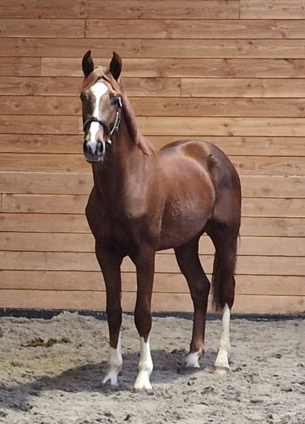 Talentvolle 2.5 jarige dressuurgefokte hengst Zijn afstamming: Vitalis x Uphill x Florencio Komt uit een zeer predikaatrijke moederlijn. Hij heeft 't D-OC predikaat. Geboren op 8 juni 2023 en heeft een momenteel een stokmaat van circa 1.70m. Een opvallende verschijning! Voor meer informatie graag bellen of appen, 0613704472
