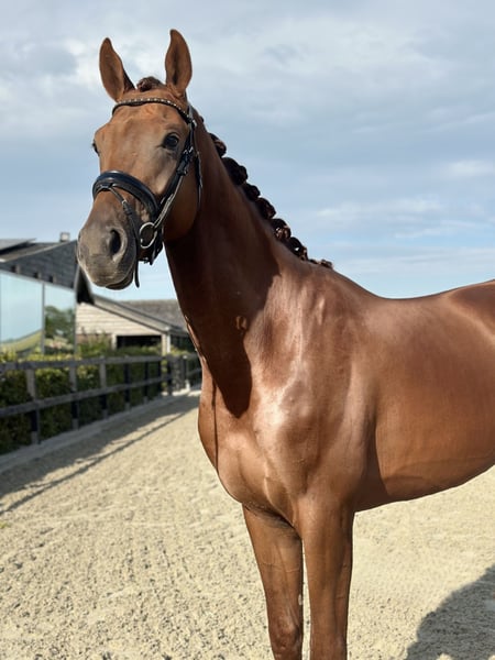 Łatwy w prowadzeniu koń, bardzo lekki w obsłudze. Posiada trzy ponadprzeciętne chody, z których chód jest bardzo przestronny, stęp wydaje się być wyraźnie wyregulowany, a galop jest mocno uniesiony i dynamiczny. Jego rodowód to Livius x Daily Diamond. Ma około 172 cm wzrostu. Zapewnia bardzo bezpieczne i pewne uczucie, mimo młodego wieku. Dlatego może być również odpowiedni dla mniej doświadczonego jeźdźca lub jako koń przejściowy z kucyka na dużego konia. Badanie rentgenowskie jest w porządku i potwierdzone. Po więcej informacji lub wideo proszę dzwonić lub pisać przez WhatsApp pod numer 0611749613.