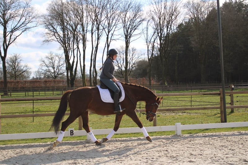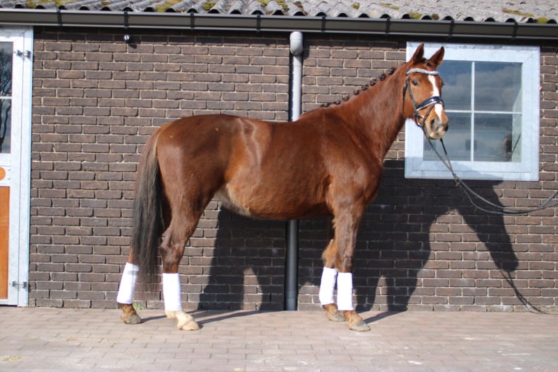 Meet Moby, also known as Molly! Molly is this year 9 years old and descends from Glock’s Toto Jr. x Kennedy, making her particularly interesting for breeding. She has already given us a beautiful foal, became pregnant immediately, and is an excellent mother. Besides her qualities as a broodmare, Molly is also suitable as a riding horse, although she is still a bit green in that regard. She is well-behaved on trail rides, has controlled all three gaits, and can jump up to approximately 80 cm. Due to lack of time, she has not been ridden in the past six months but is now being brought back into work. Molly is available for sale because we wish to focus on other mares within our breeding program. She measures 1.63 meters (16.1 hh). For more information or if interested, please feel free to contact us!