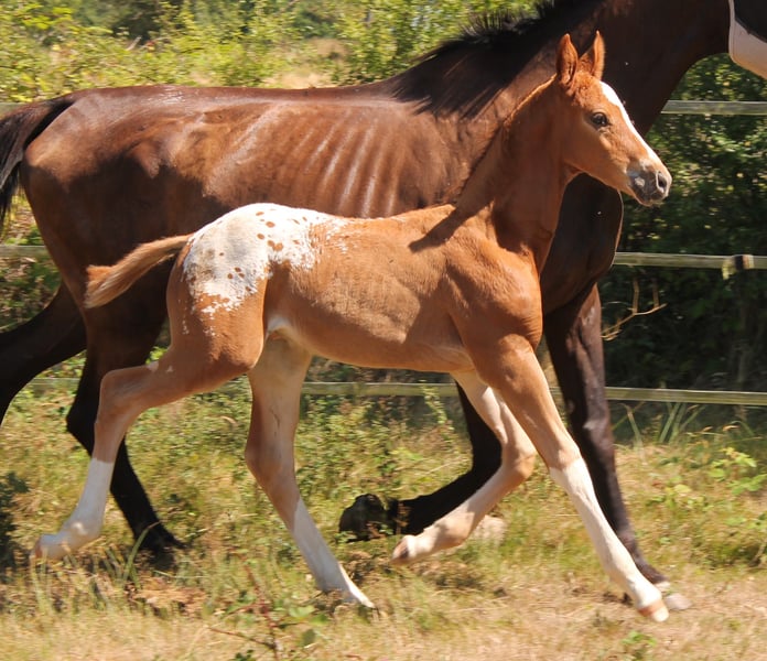 Disponible à la réservation : Poulain alezan capé KWPN par J-Nius V.V Z (Little Indian x Ugano Sitte x Chacco-Blue) et Britt, KWPN (Burggraaf x Phin Pin (Chin x Chin)). Devrait toiser environ 1m65/170. Très bien fait, grand et chic. Idéal pour projet sportif ou pour de l’élevage. Très gentil et proche de l’homme. Il sera disponible début 2026 à son sevrage vers 7/8 mois, manipulé, vermifugé, primovacciné. Visible en Dordogne proche Bergerac. Tarif : 8 000 € avec possibilité d'échelonner le paiement jusqu'au sevrage.